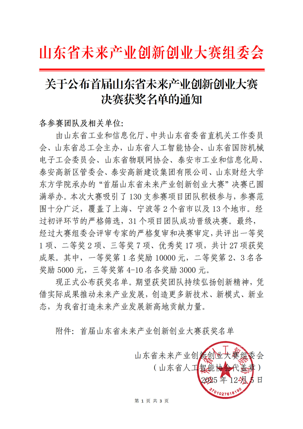 我会理事单位赛飞特工程技术集团有限公司在首届山东省未来产业创新创业大赛中荣获二等奖、三等奖各一项近日,由山东省工业和信息化厅、中共山东省省委省直机关工作委员会、山东省总工会联合主办的首届山东省未来产业创新创业大赛决赛圆满落幕。中国国际科技促进会低空经济分会理事单位——赛飞特工程技术集团有限公司(简称“赛飞特集团”)凭借卓越的创新能力和扎实的技术实力,在众多参赛项目中脱颖而出,荣获二等奖一项、三等奖一项,展现了赛飞特集团在未来产业领域的强劲竞争力。