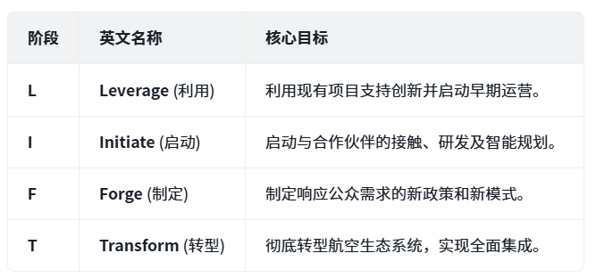 三、实施蓝图:“LIFT”四阶段行动计划为将战略转化为行动,美国交通部制定了名为“LIFT”的四阶段实施蓝图,旨在支持AAM的安全、可靠和协调引入。