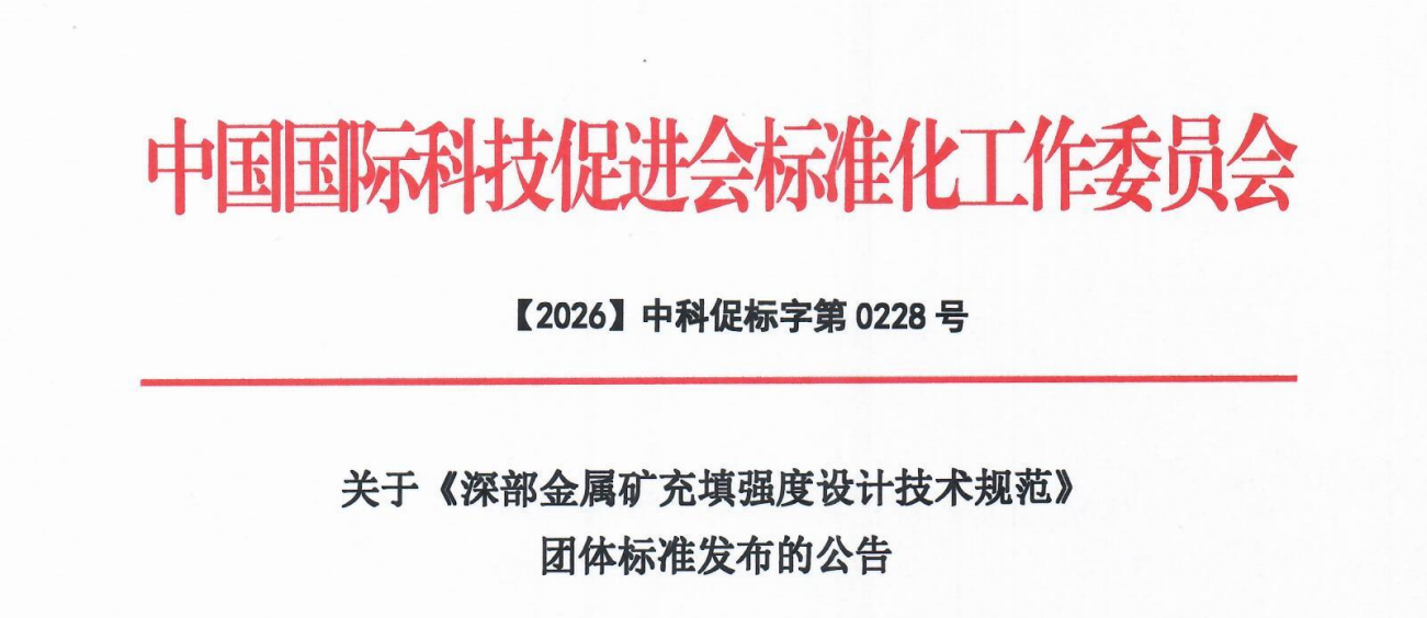 热烈祝贺《深部金属矿充填强度设计技术规范》团体标准成功发布